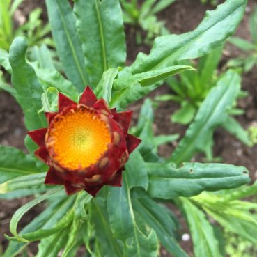 Strawflower (Xerochrysum bracteantha) also known as the Golden Everlasting, Paper Daisy, Immortelle or Xerochrysum is a fast-growing Australian native and is a part of the Asteraceae family. Strawflowers are between two and three feet tall. The colorful petals of this plant aren’t even petals at all, but modified leaves called bracts. In fact, they are dry, dead tissue. The true flowers are the tiny florets that make up a dense, center disc, that may match or contrast with the bracts.