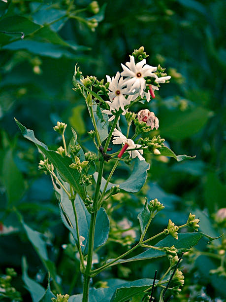 The highly fragrant flower, also known as Harsingar, Night jasmine, Queen of night (Raat ki Rani), or Tree of sorrow, can grow as a shrub or a tree. The plant produces flowers in clusters of white color having an orange-red center and blooms during the night. The plant is a native of South Asia and can be found in India, Nepal, Pakistan, and Thailand. Parijat flowers are the official flowers of West Bengal and are used in festivals as offerings for Goddess Durga and Lord Vishnu.