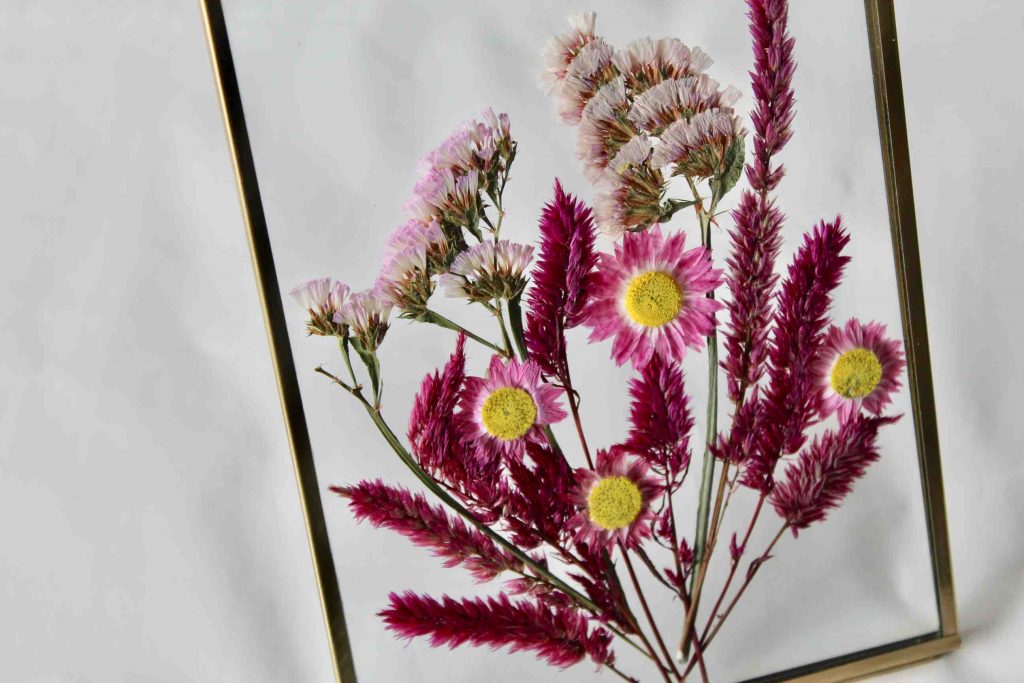 To make this wall art you’ll need some pressed flowers, a picture frame, a thick artboard, or watercolor paper.