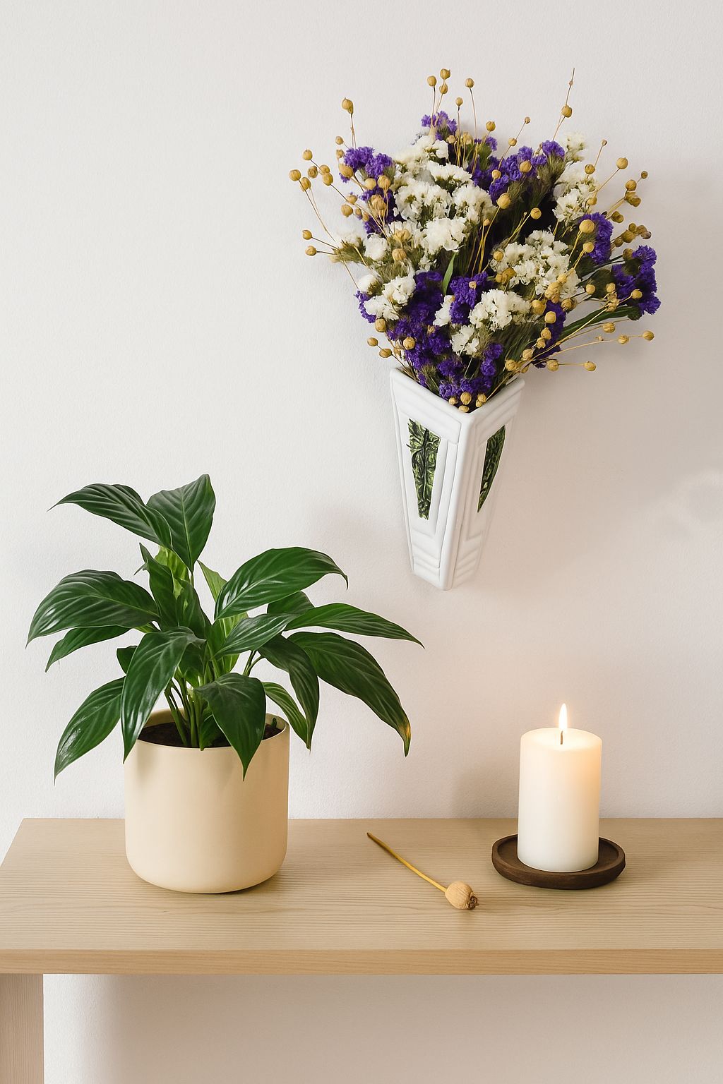 Gone are the days when decor meant plastic flowers or machine-made wall art. Today’s home lovers crave organic textures, neutral palettes, and pieces that tell a story. Whether it’s a glass candle holder adorned with pressed flowers or a rustic bouquet of naturally dried grasses, each element adds warmth and authenticity to your space.