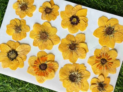 Set Of 5 Golden Yellow Dried Pressed Flowers