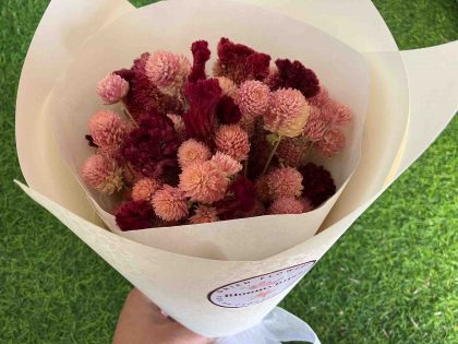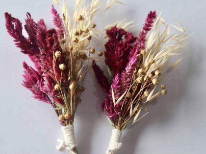 Set of 2 Maroon Cream Dried Flowers Bunch For Gift Box