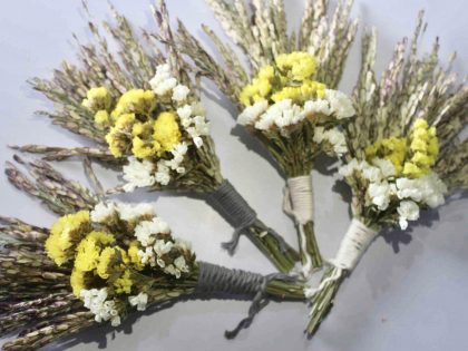 Set of 4 Yellow White Dried Flowers Bunch For Gift Box