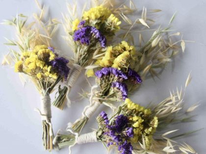 Set of 4 Yellow Violet Dried Flowers Bunch For Gift Box