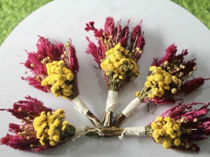 Set of 5 Yellow Maroon Dried Flowers Bunch For Gift Box