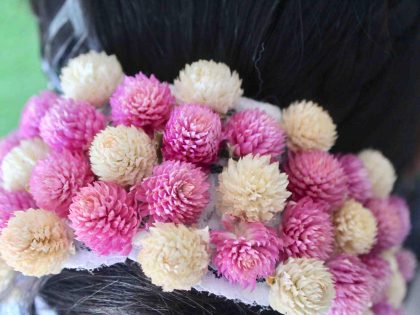Dried flower jewellery are today’s accessories to stylize your look for a unique hair decoration. Nice color combination of dried flowers jewellery appears lovely with your unique hairstyle. You can choose the color combination matched with your dress.