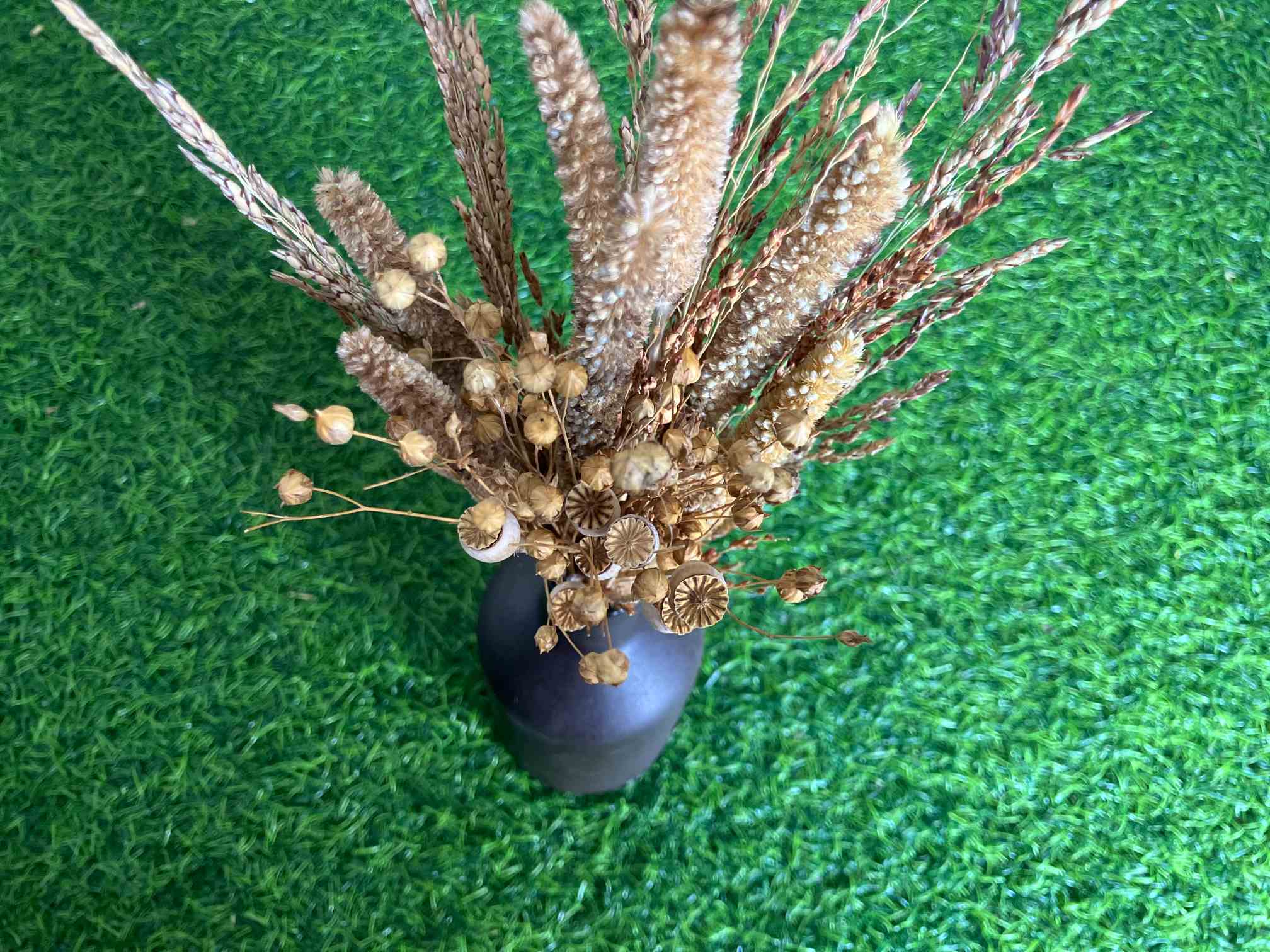 • Architectural Beauty: Discover captivating textures and forms with feathery Millet Sprays, sculptural Poppy Seed Pods, intricate Flax Seed Pods, and wispy natural Grasses that create visual depth and interest