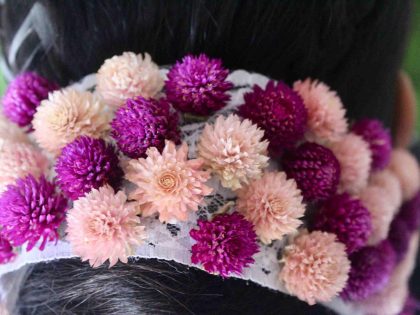 Dried flower jewellery are today’s accessories to stylize your look for a unique hair decoration. Nice color combination of dried flowers jewellery appears lovely with your unique hairstyle. You can choose the color combination matched with your dress.