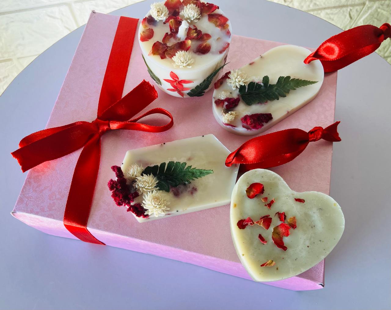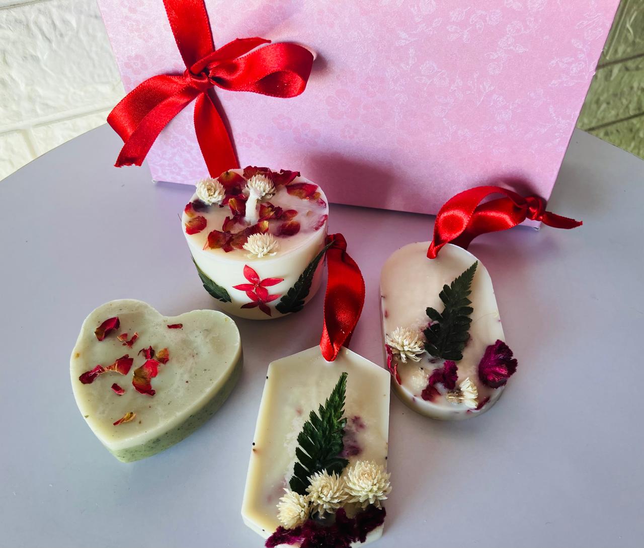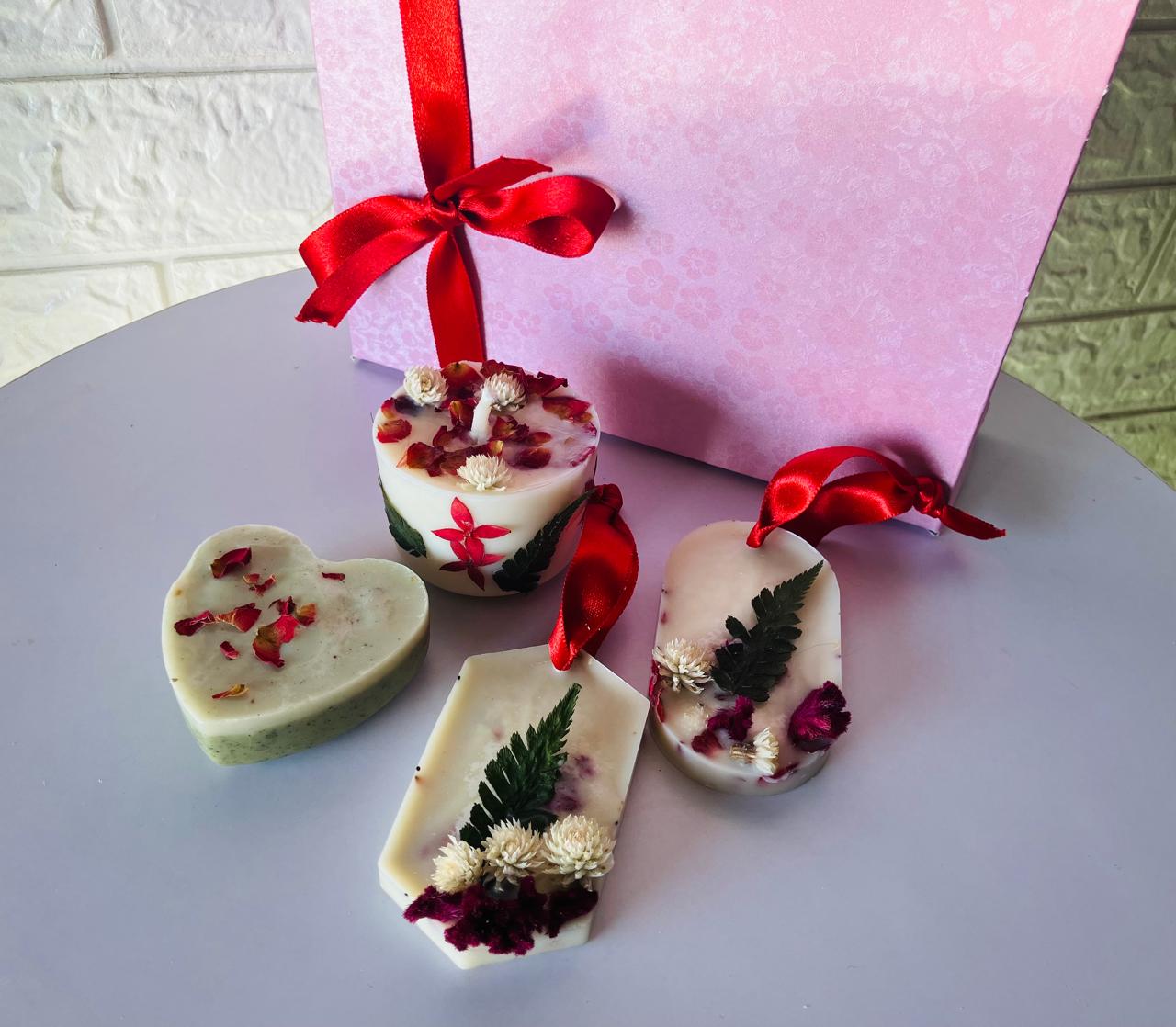 - Box Include Set of 2 Wax Sachets, Organic Goatmilk Soap, and Scented candle