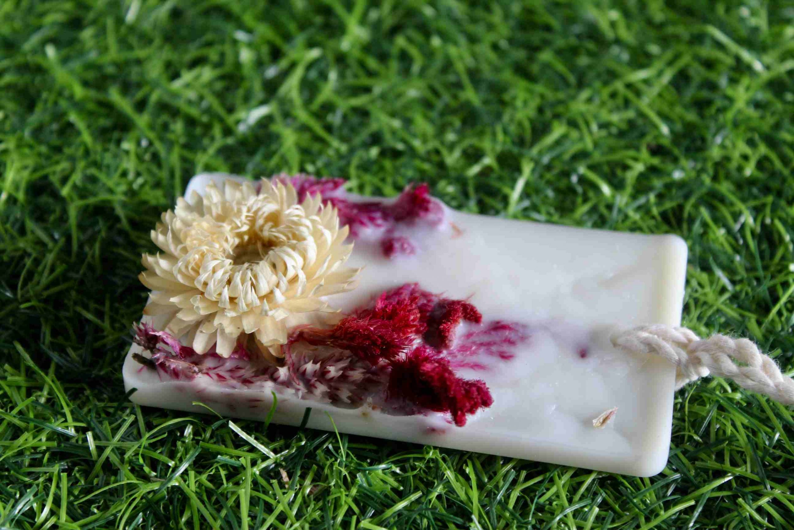 Handmade Scented Wax Sachet, infused with essential oils! A wax sachet is a solid, natural air freshener made with soy wax, dried flowers, herbs and spices, and scented with essential oils. Unlike candles or wax melts, scented wax sachets don’t have to be heated. Please keep out of direct sunlight. Don’t hang in places where it will get hot enough to melt unless that’s your intent. Don’t leave them to lay on wooden surfaces or on anything that may stain.