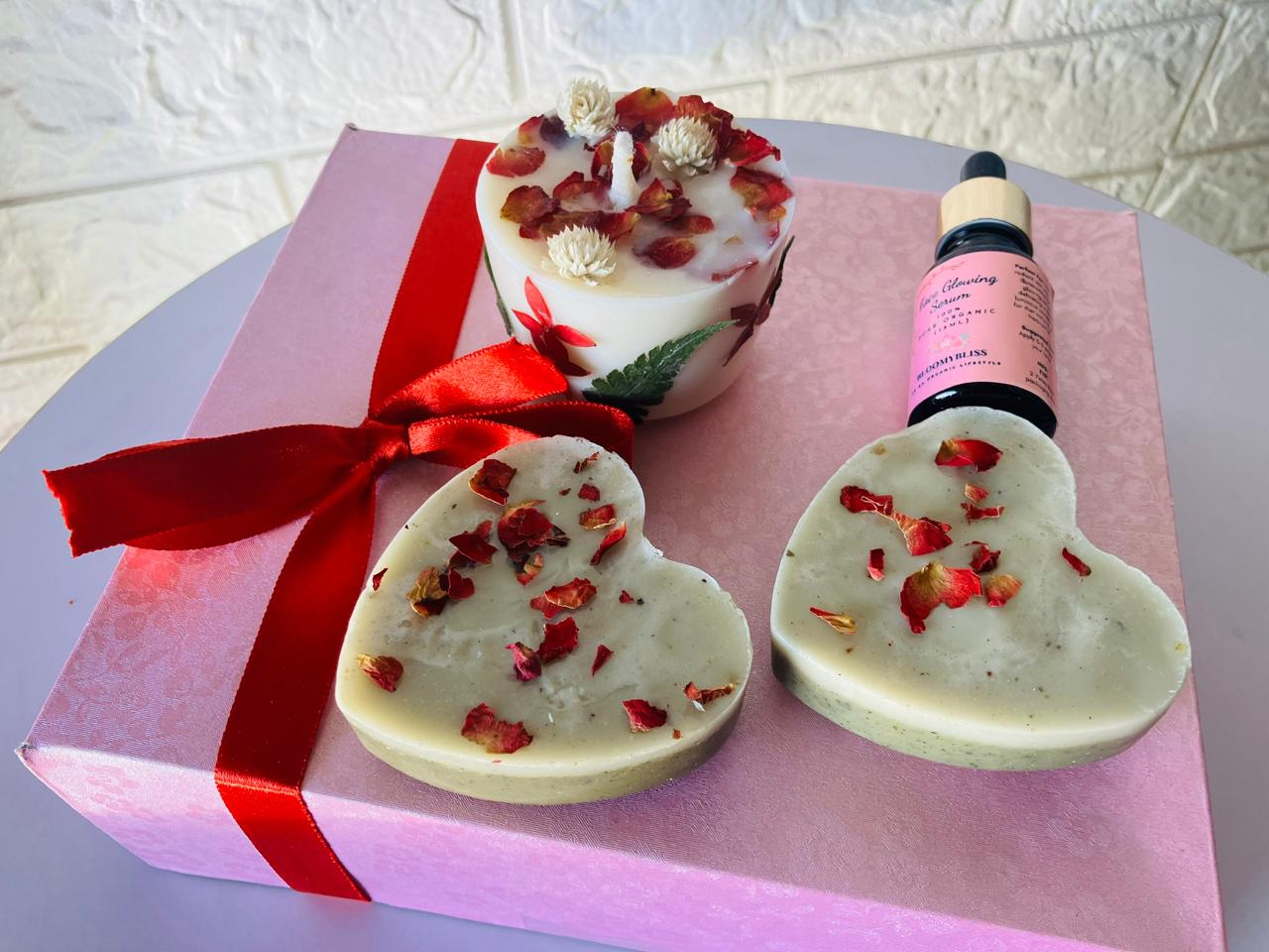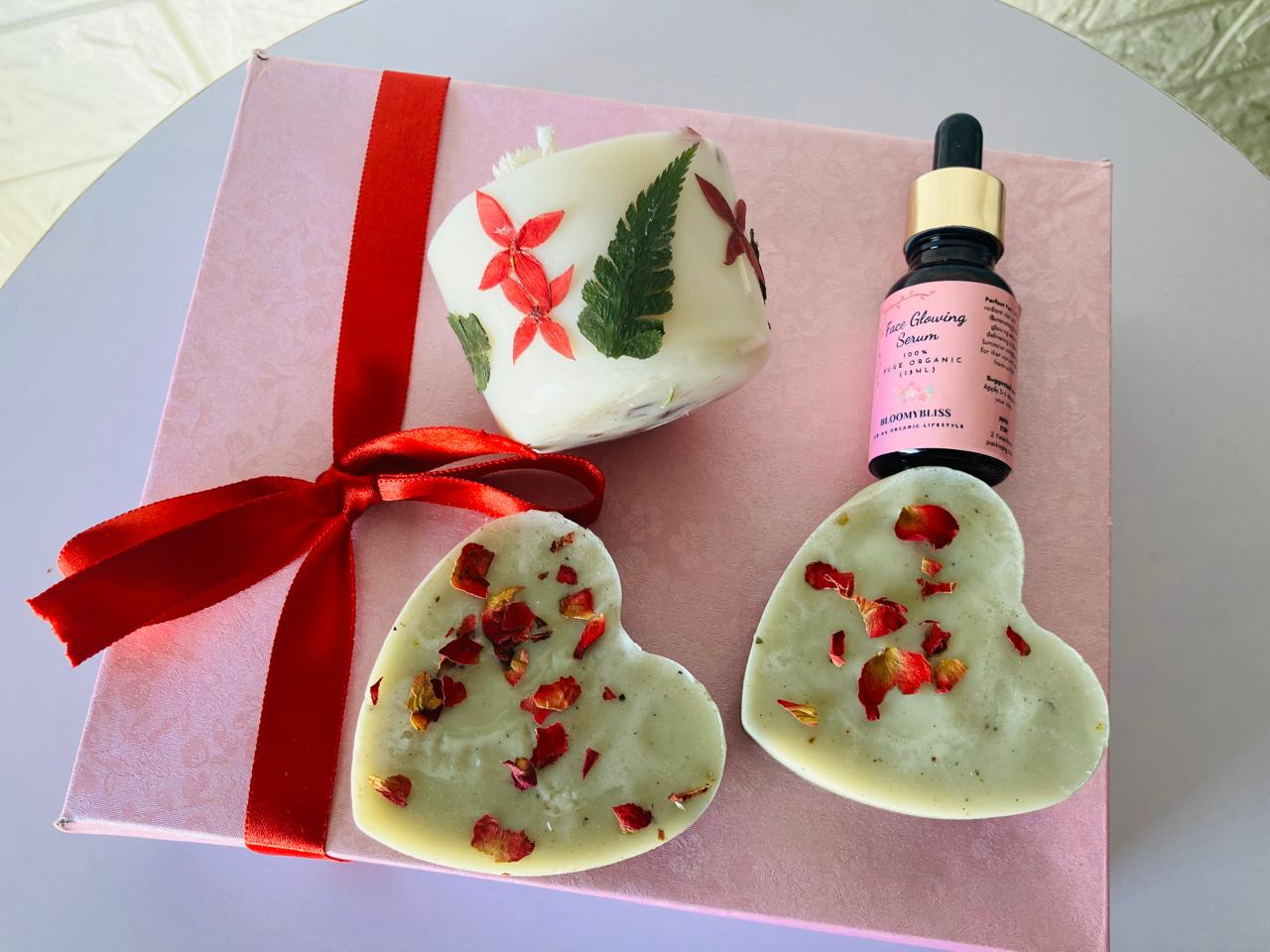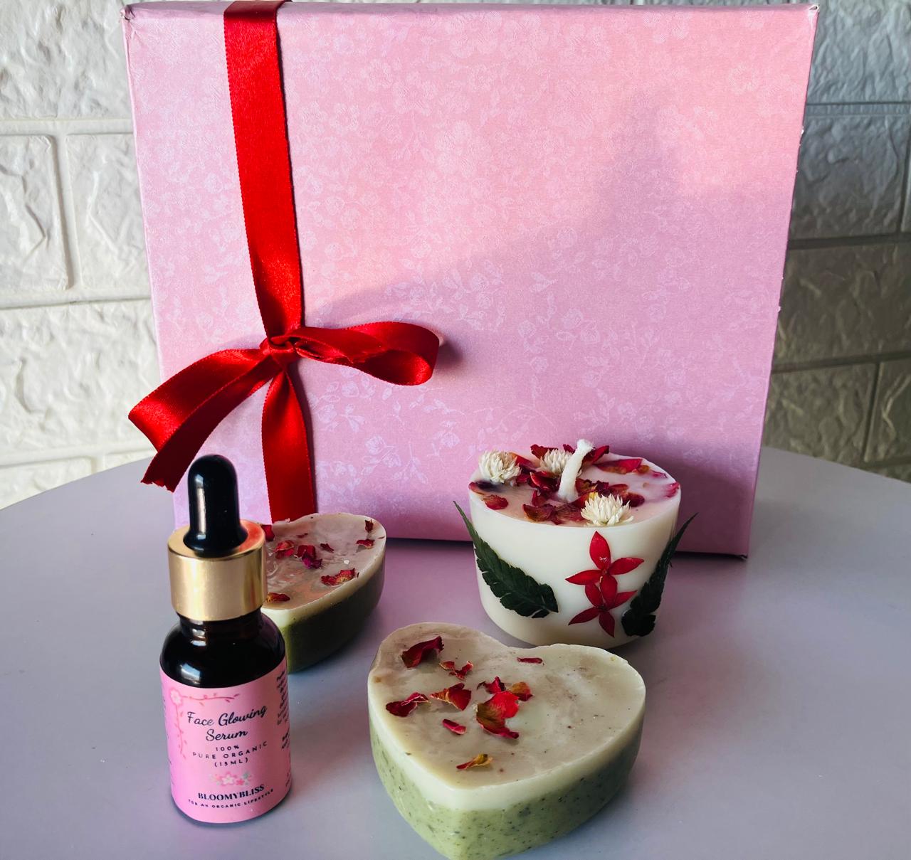 - Box Include Set of 2 Organic Soaps , Organic face glowing serum and scented candle
