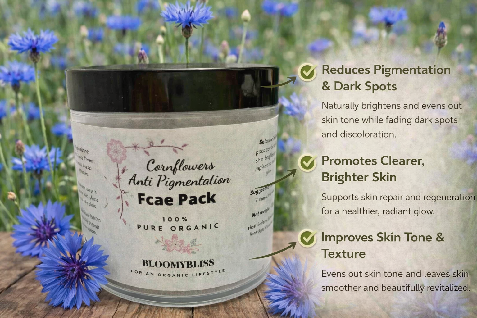 • Blue cornflower extract is believed to have skin-brightening properties. Including it in a face pack may help promote a more radiant complexion and reduce the appearance of dullness.