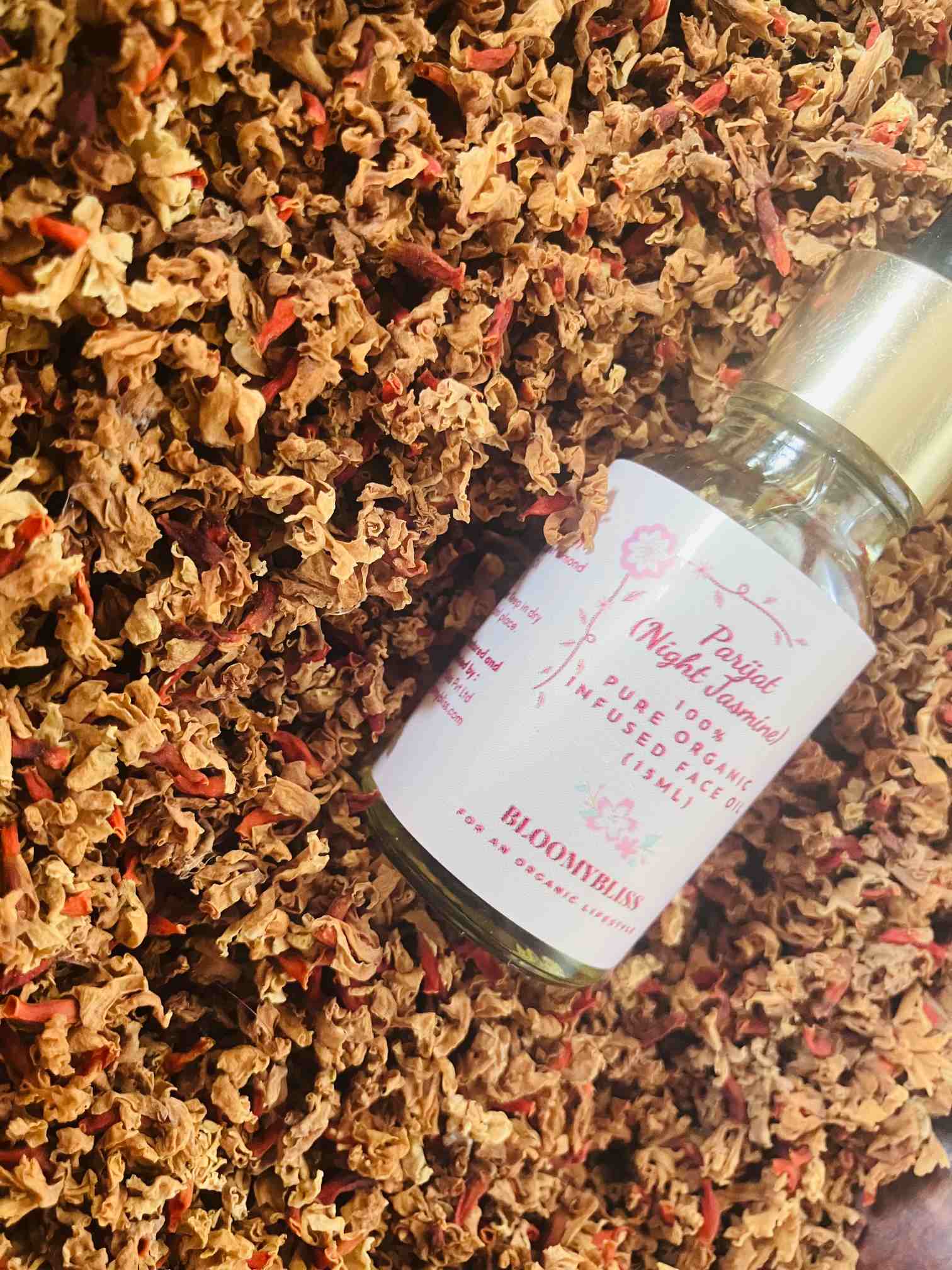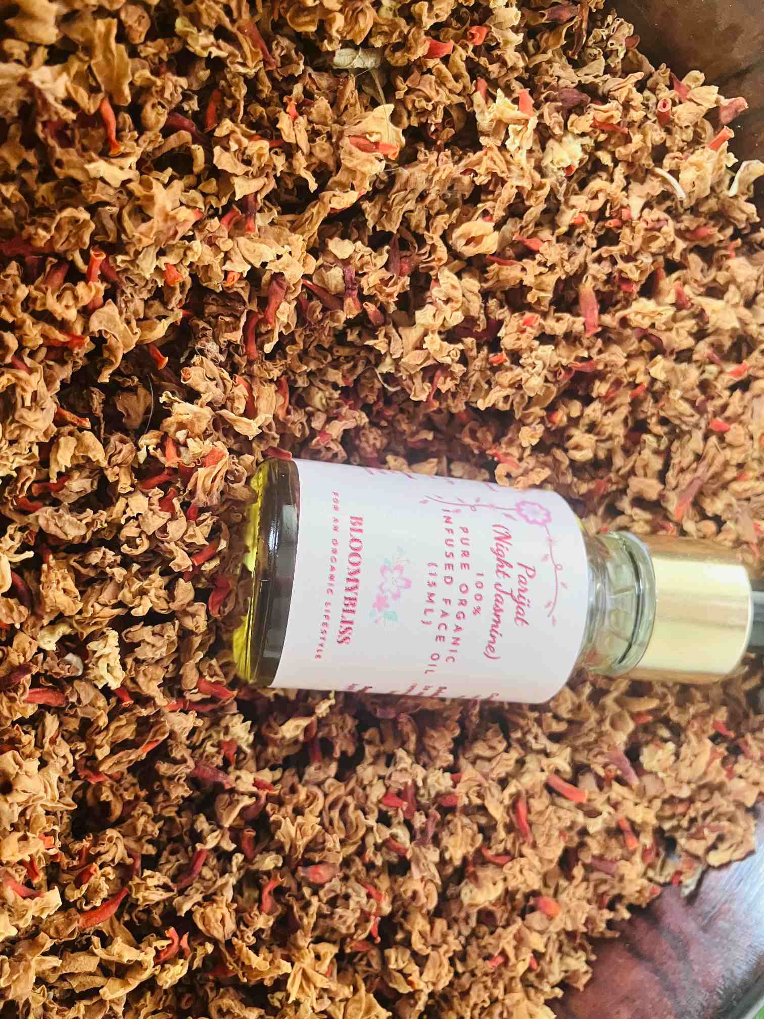 At BloomyBliss, every bottle is crafted with love using flowers grown on our own farm. Our Parijat Infused Face Oil is: