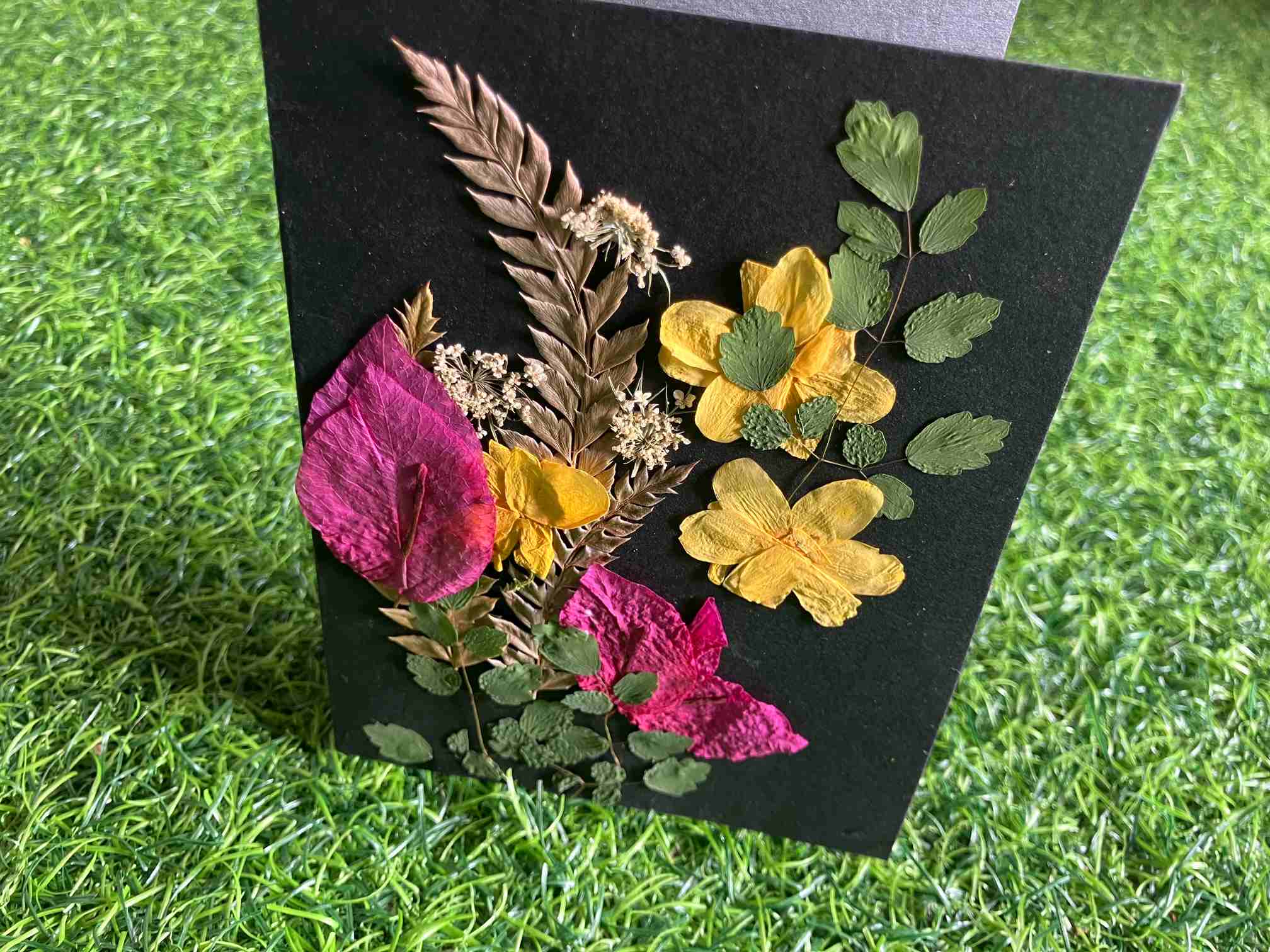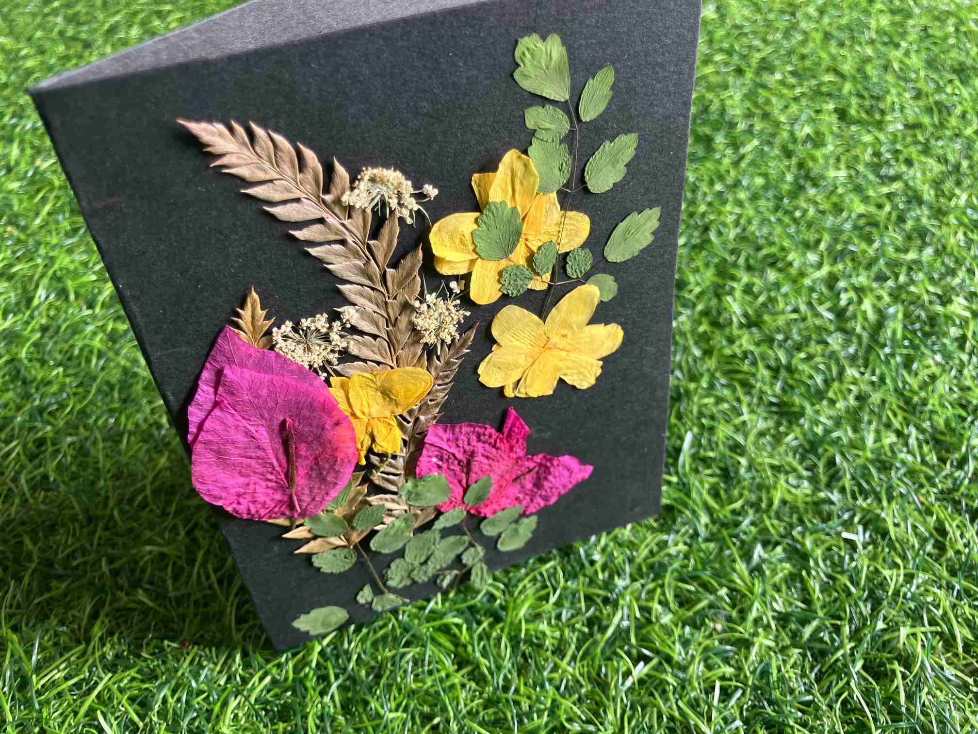 You’ll love these handcrafted dried flower cards! Each one has been individually crafted by an artist who uses only natural materials.These handmade dried flower cards will brighten any room in your home. Each card comes with a beautiful bouquet of dried flowers and a handwritten message. Choose from a variety of designs, colors, and themes.