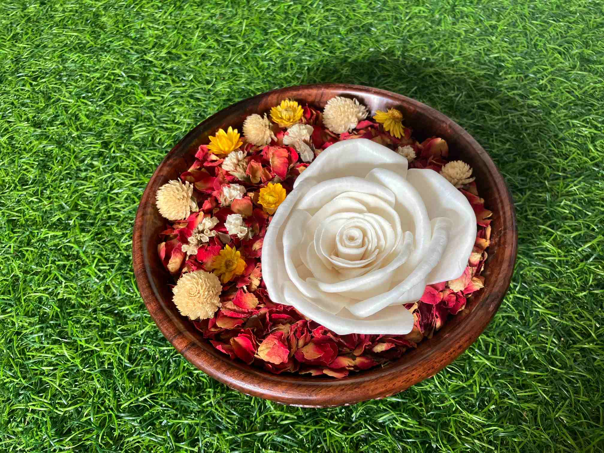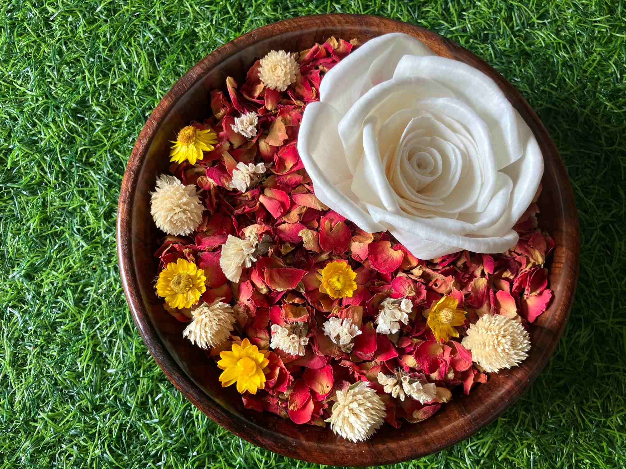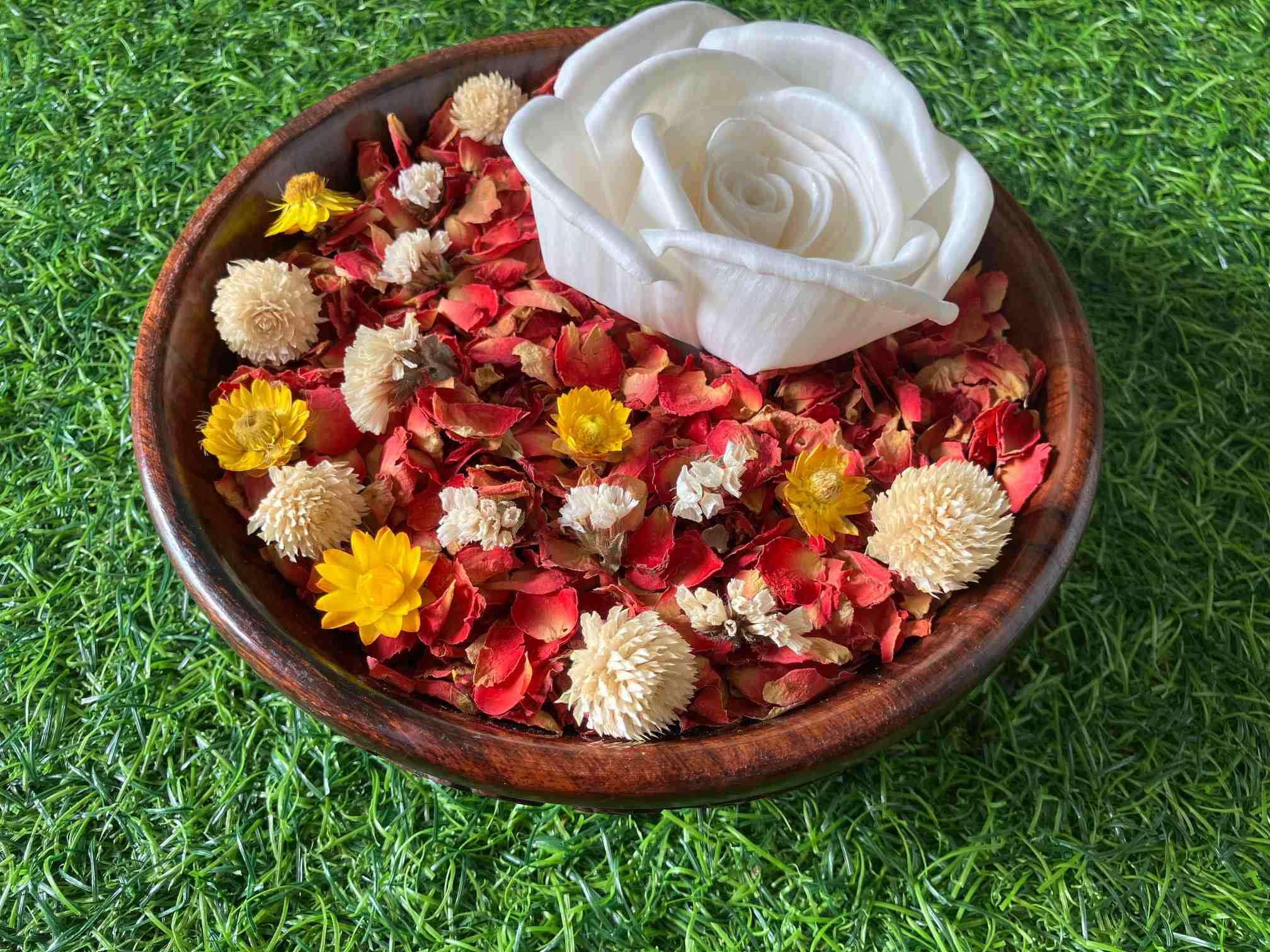 Material : Dried Rose Petals, Dry Flowers and solawood flower and essential oil